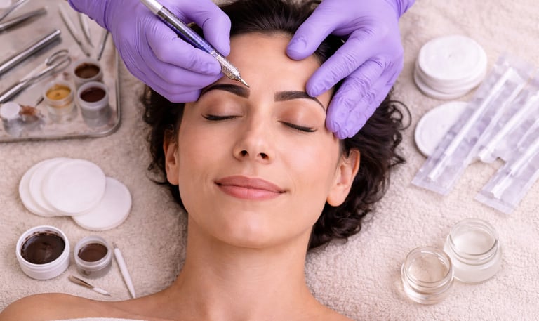 Powder brows is a cosmetic semi permanent makeup technique designed to create eyebrows with soft powder effect, very similar to powder makeup
